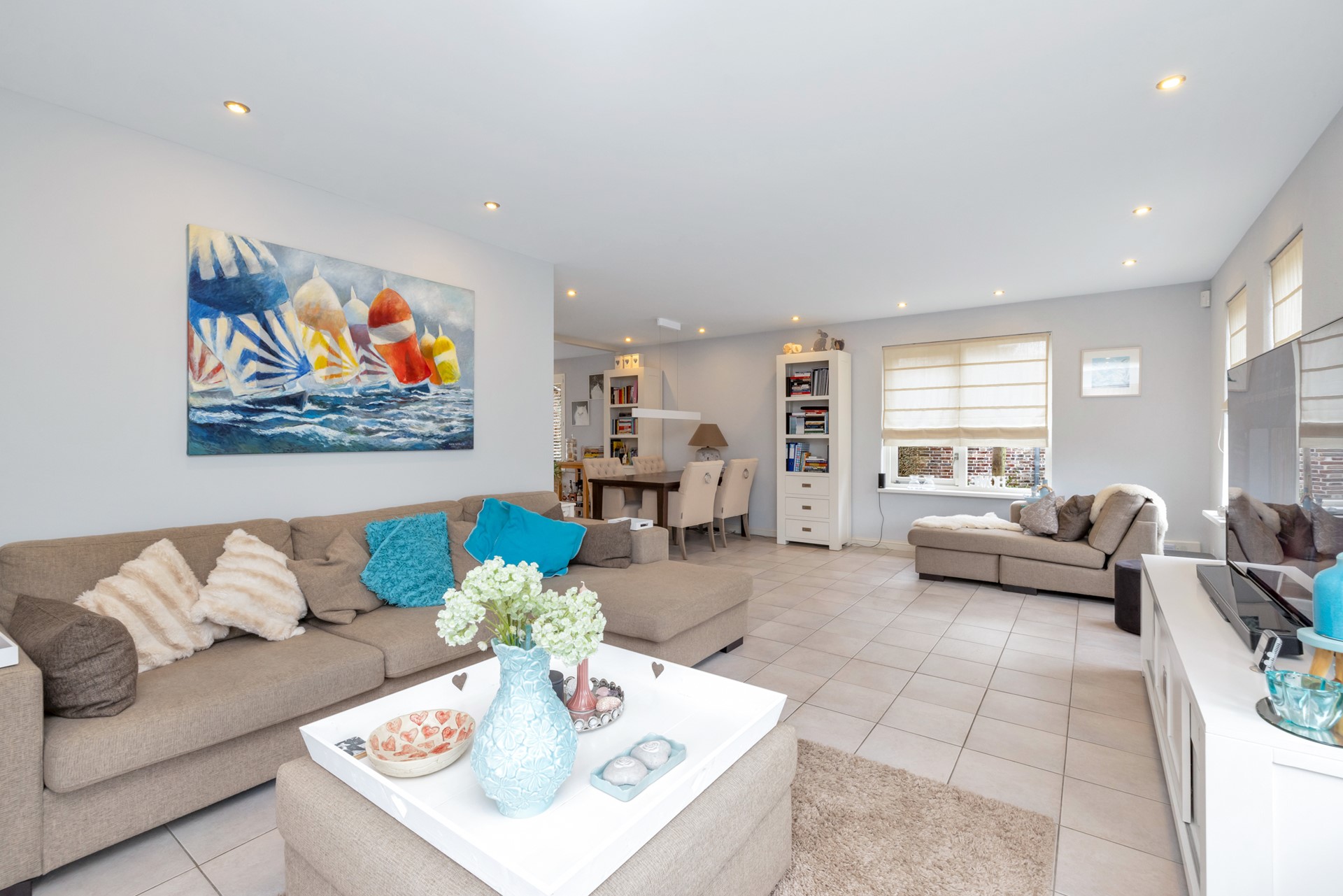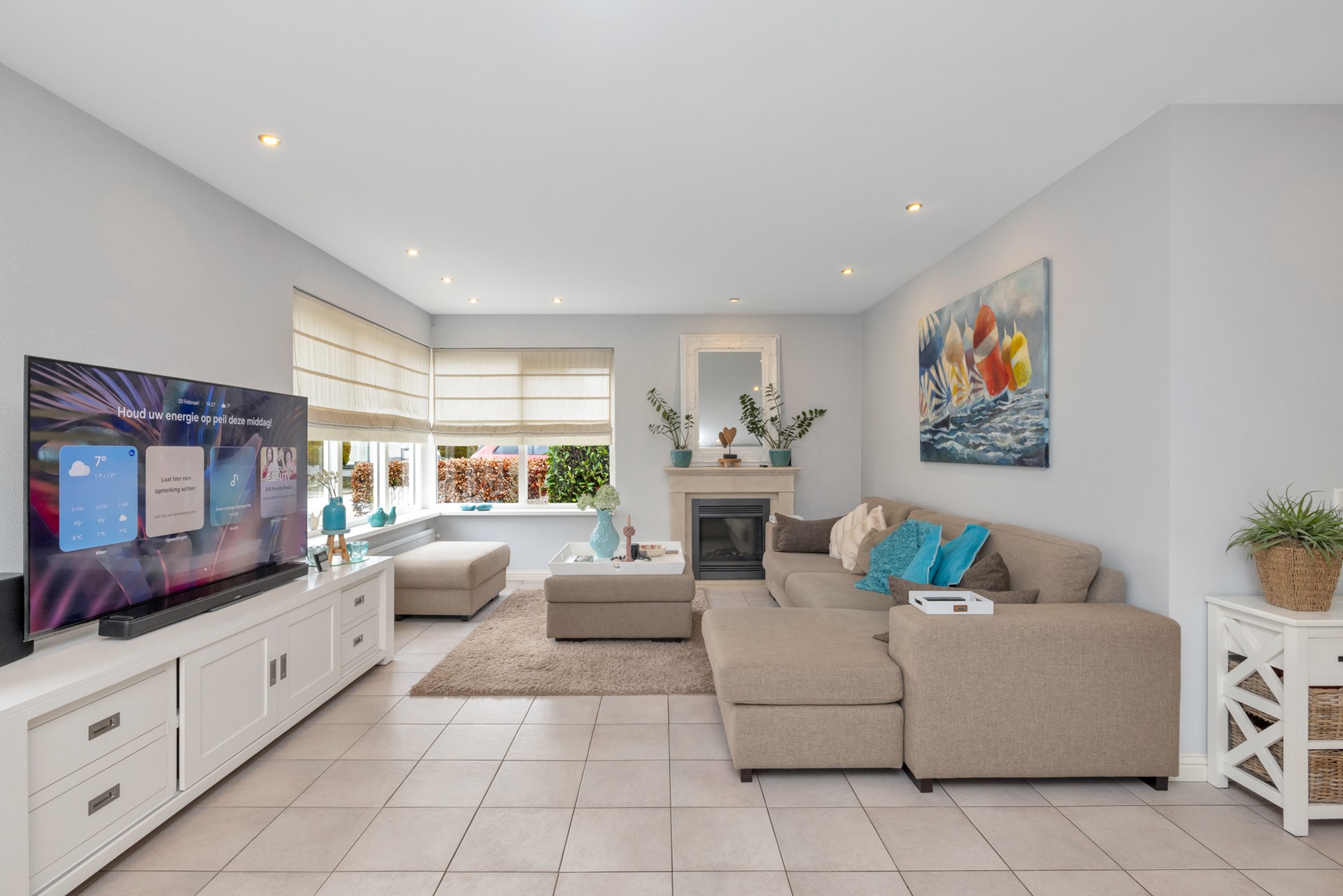 De combinatie van vloerverwarming, een hoog plafond op de begane grond en recent geschilderde wanden in warme tinten zorgt voor een rustige, eigentijdse en luxe uitstraling.